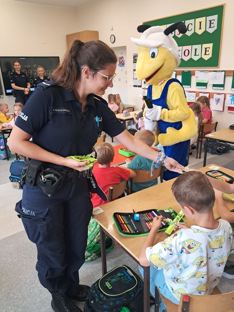 Policjantki i Mrówka w Szkole Podstawowej w Sadlinkach – wspólna lekcja o bezpieczeństwie