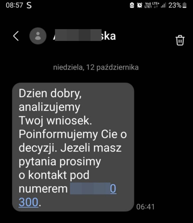 W ostatnim czasie policja odnotowuje wzmożoną liczbę zgłoszeń dotyczących fałszywych SMS-ów wysyłanych przez cyberoszustów. Nadawcy podszywają się pod znane banki, instytucje finansowe czy firmy pożyczkowe, oferując „szybki kredyt”, „atrakcyjną pożyczkę” lub „sprawdzenie zdolności kredytowej”. W treści wiadomości często znajduje się link prowadzący do strony łudząco przypominającej witrynę banku.