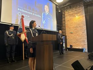 Uroczyste pożegnanie insp. Jacka Kowalskiego ze sztandarem kwidzyńskiej Policji