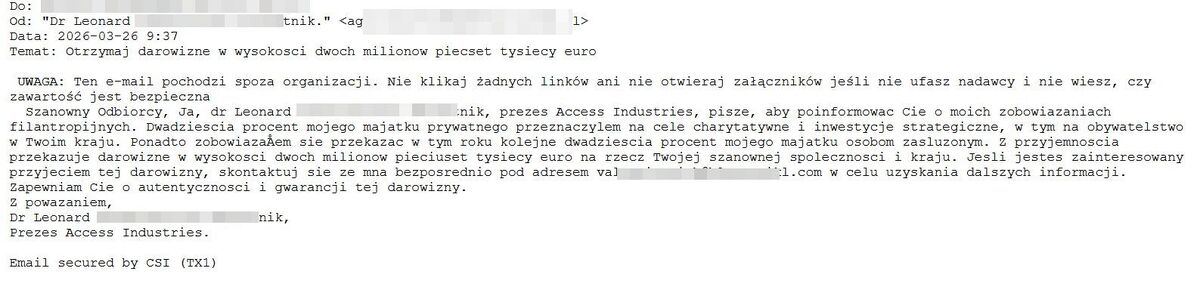 Uwaga na oszustwa internetowe – fałszywe maile o darowiznach na miliony euro