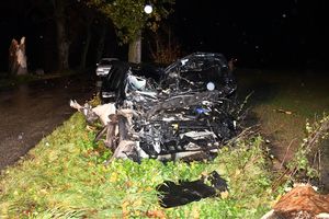 Silny wiatr powalił drzewo na jadący samochód – dwie osoby trafiły do szpitala